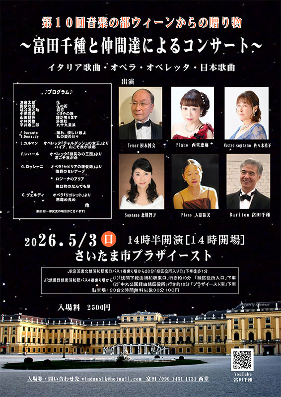 (曲目は一部変更の場合がございます)主催 りんでんばうむの会 お問い合わせ 「きたがわ ヴォイス スクール」お問い合わせフォームをご利用いただくか、竹内 048-746-3121 又は 大舘 048-745-4646 までお問い合わせください。